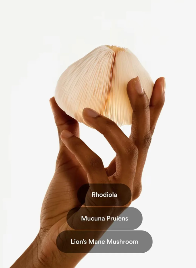 Elyria contains Rhodiola Rosea (stress support), Mucuna Pruriens (dopamine support), and Lion’s Mane Mushroom (cognitive and emotional support).